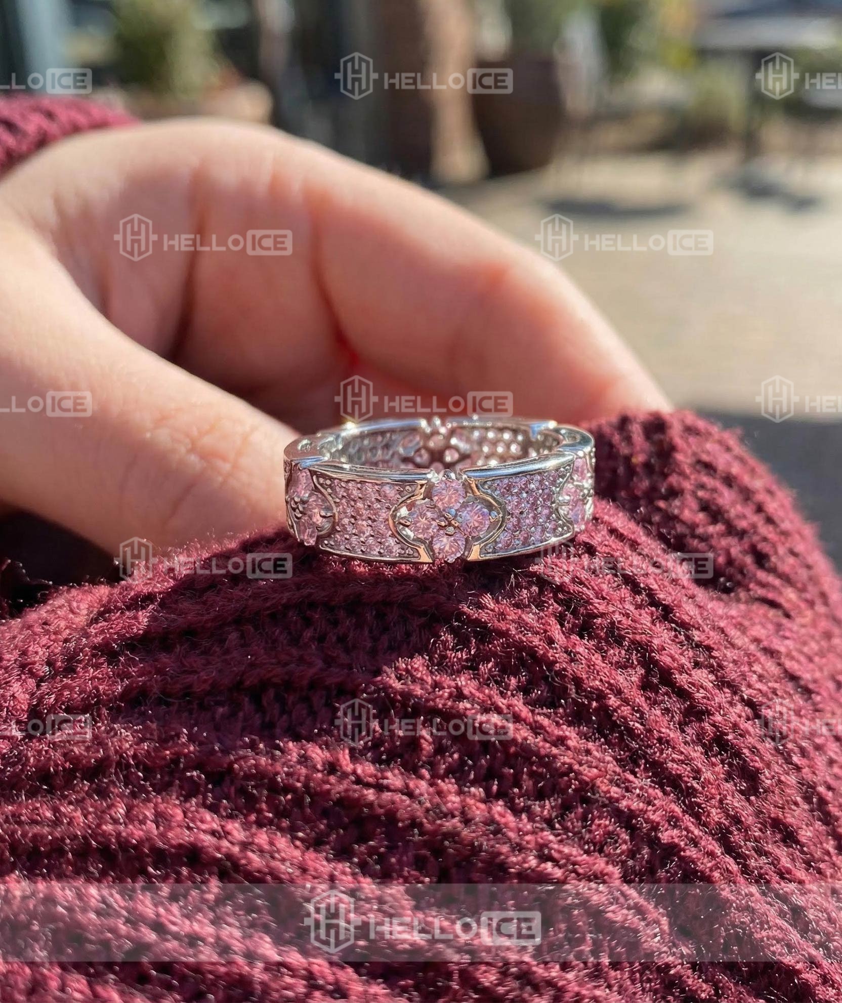 Got this for my girlfriend and she hasn't taken it off since. The pink stones are super shiny, especially in the sun.